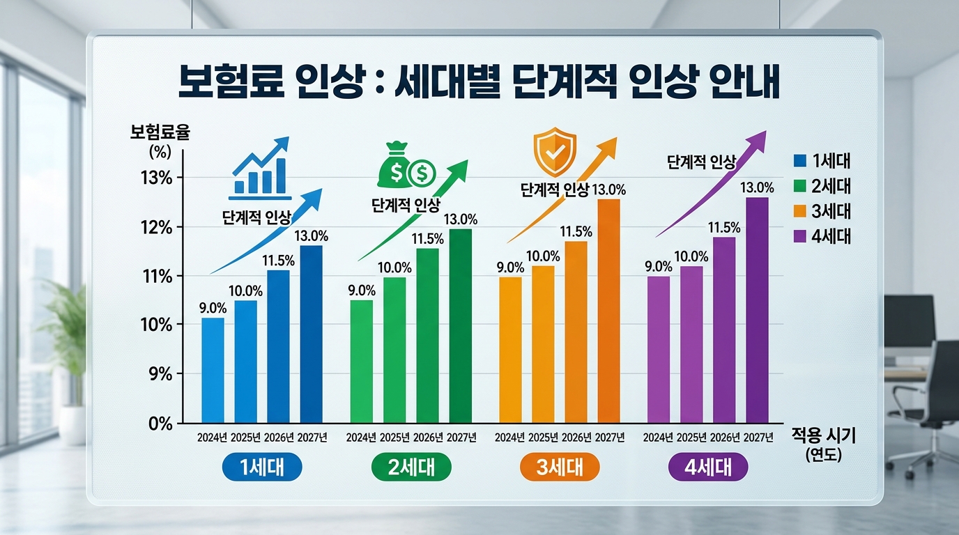 2. 2026년 보험료율 9% → 13% 인상 시나리오 📈