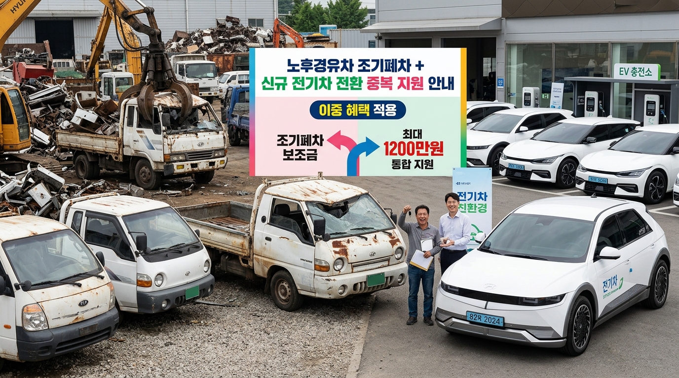 만약 여러분의 차량이 4등급 또는 5등급 경유차라면 조기폐차 보조금을 별도로 신청할 수 있습니다. 3.5톤 미만 차량 기준 최대 300만 원까지 지원되죠. 여기에 전기차 구매 시 전환지원금 100만 원을 '중복 수령' 할 수 있는 경우가 많습니다. 폐차 고철값 + 조기폐차금 + 전환지원금까지 합치면 웬만한 중고차 판매가보다 훨씬 높은 수익을 얻을 수 있습니다.
