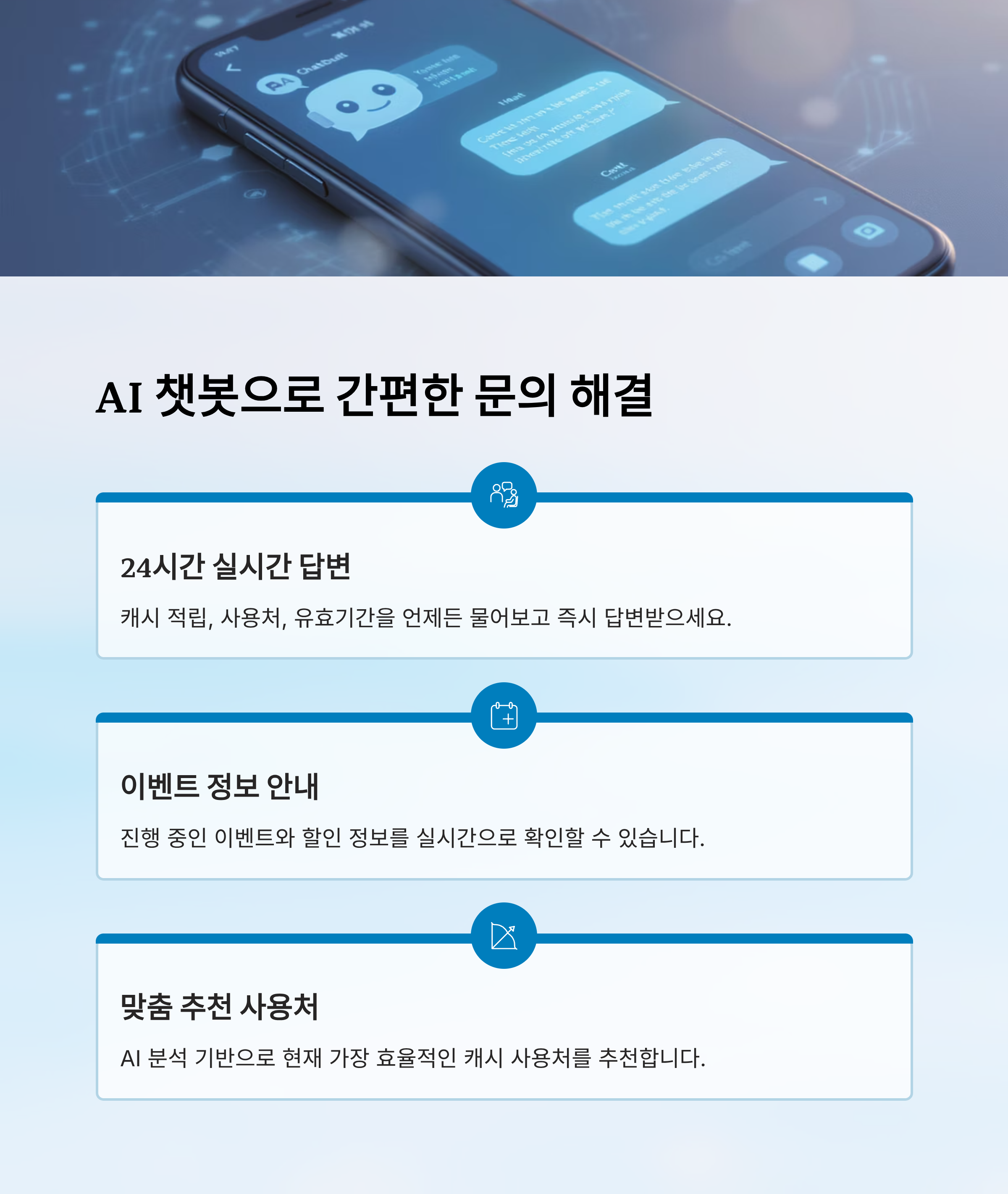 챗봇 기능을 활용하면 사용자가 직접 검색할 필요 없이 필요한 정보만 바로 얻을 수 있어요. 특히 이벤트 기간 동안 놓치지 않고 혜택을 누릴 수 있어서 캐시 효율이 극대화돼요.