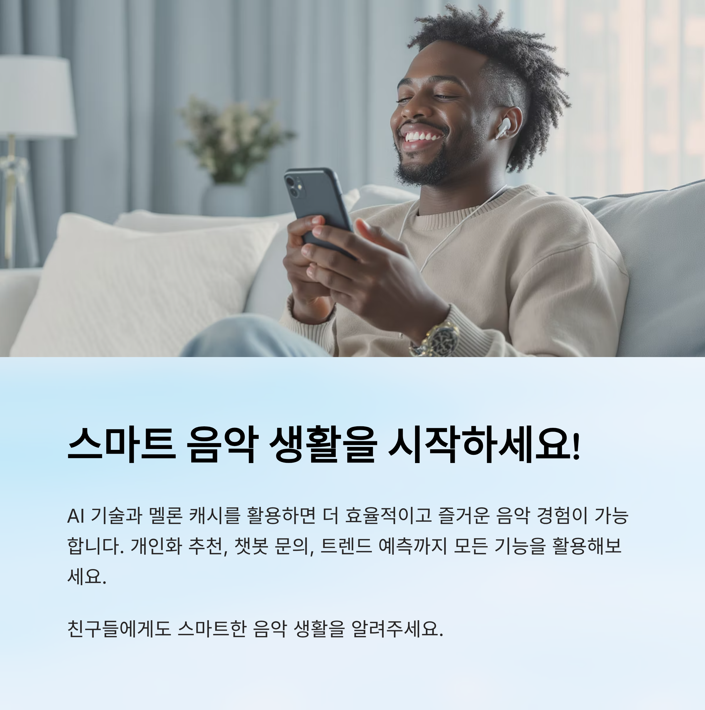 또한, AI는 사용자의 취향에 맞는 새로운 콘텐츠를 추천해 캐시를 자연스럽게 활용하도록 유도해요. 평소 듣는 장르, 재생 기록, 친구들의 플레이리스트까지 고려해서 맞춤형 추천을 제공하니, 음악 생활이 훨씬 풍성해져요.