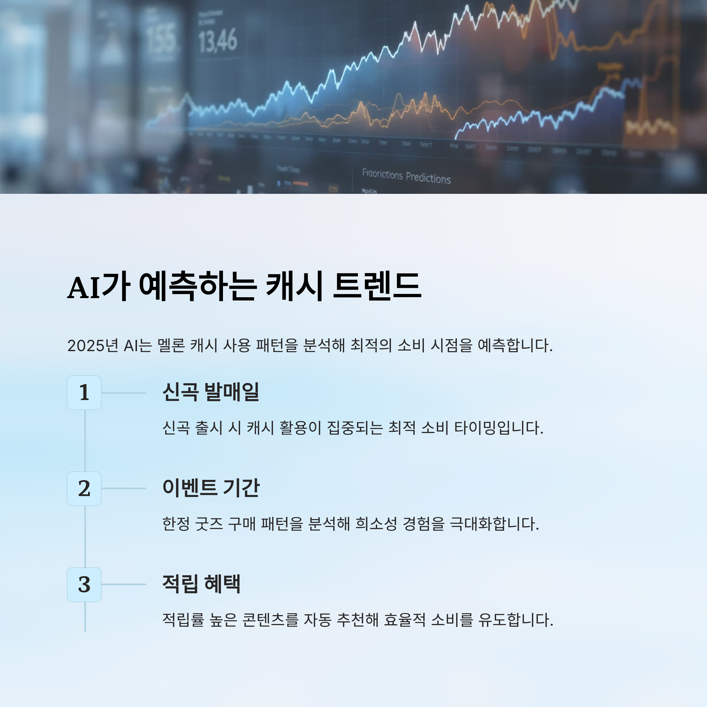 AI 분석으로 보면, 팬덤 중심의 한정 굿즈 구매, 신곡 발매일 캐시 활용, 플레이리스트 구독 등 특정 패턴이 반복되고 있어요. 이러한 정보를 기반으로 사용자는 미리 전략적으로 캐시를 사용할 수 있답니다.